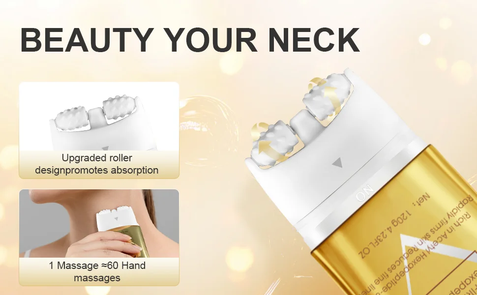 Features a massage roller to boost absorption, firms sagging skin, and visibly reduces turkey neck in 28 days. Enriched with firming Hexapeptide-8 & ah-8 for tighter, smoother neck skin